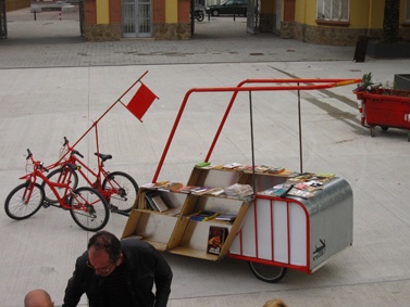 Entre los materiales reutilizados y reciclados se encuentran: -estantería del remolque (caja/marco madera con bisagras), Arbúcies-partes de bicicletas (taller de Dorado), Santa Coloma y Mataró -tableros (Escola d’Art i Superior de Disseny Pau Gargallo), Badalona-perfiles metálicos (Escola d’Art i Superior de Disseny Pau Gargallo), Badalona-mesas de dibujo (Escola d’Art i Superior de Disseny Pau Gargallo), Badalona-mural móvil (Regidoria De Dones), Badalona-tacos de madera (Fabrica Madera), Badalona A parte hubo la necesidad de comprar algún material (y a su vez), concretamente consumibles:-