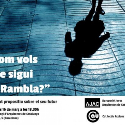 “Como quieres que sea la Rambla?" Un debate propositivo sobre su futuro Viernes 16 de marzo a las 18.30h COAC, Col·legi d'Arquitectes de Catalunya Plaça Nova, 5 (Barcelona) La Rambla ha sido durante mucho tiempo el espacio publico privilegiado de la ciudad de Barcelona. En los últimos años parece haberse convertidos en el catalizador de todos los problemas de la ciudad: exceso de turismo, abandono de parte de la ciudadanía, foco de atracción de la pequeña criminalidad. En los últimos meses una serie de iniciativas plantean su recuperación.