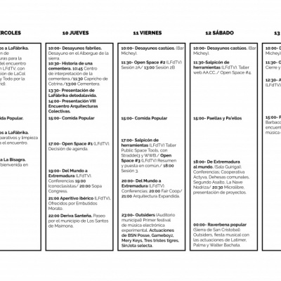 La octava edición del encuentro anual de Arquitecturas Colectivas se celebrará del 9 al 13 de septiembre de 2015 en la localidad extremeña de Los Santos de Maimona, usando como sede principal las instalaciones de LaFábrika detodalavida.