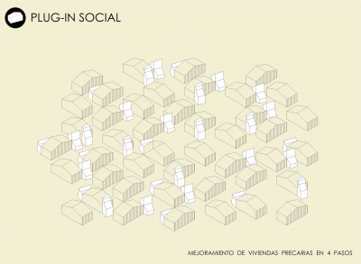 plug-in social es un proyecto de mejoramiento de viviendas precarias. diferentes dispositivos de aplican (plugean) a las casas con el objetivo de mejorar sus condiciones básicas. la materia prima que usamos proviene de desechos industriales y/o domésticos.