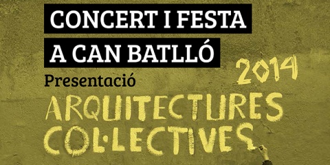 El divendres 4 d'abril a partir de les 21.00 se celebra a Can Batlló (Barcelona) la festa de presentació de la trobada anual d'Arquitectures Col·lectives, que enguany tindrà lloc a Barcelona del diumenge 6 al diumenge 13 de juliol de 2014.